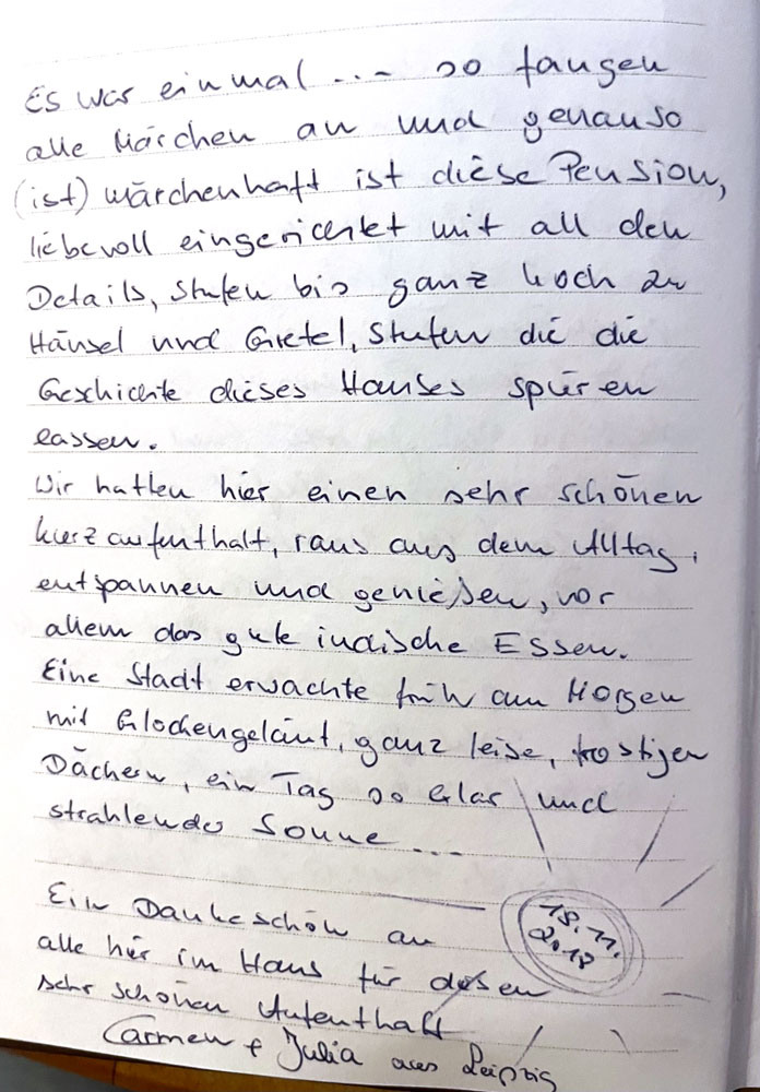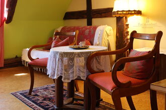 Hänsel und Gretel waren nur zu zweit unterwegs – in unserer gemütlichen Ferienwohnung in Meißen, die dem berühmten Grimm-Märchen gewidmet ist, können jedoch bis zu vier Personen entspannt übernachten. Dafür bietet das Märchenzimmer der besonderen Art ein Doppelbett sowie ein Sofa, das im Handumdrehen zu einem Doppelbett wird. Außerdem steht eine kleine Küche für Selbstversorger zur Verfügung. Wer sich im Kurzurlaub oder auf Geschäftsreise in Meißen besonders verwöhnen lassen möchte, nutzt unser Angebot als Pension mit Frühstück – und für Mittag- oder Abendessen die breite Speisekarte im angeschlossenen "Fuchshöhl • Punjabi Haveli | Indisches Restaurant & Pension".